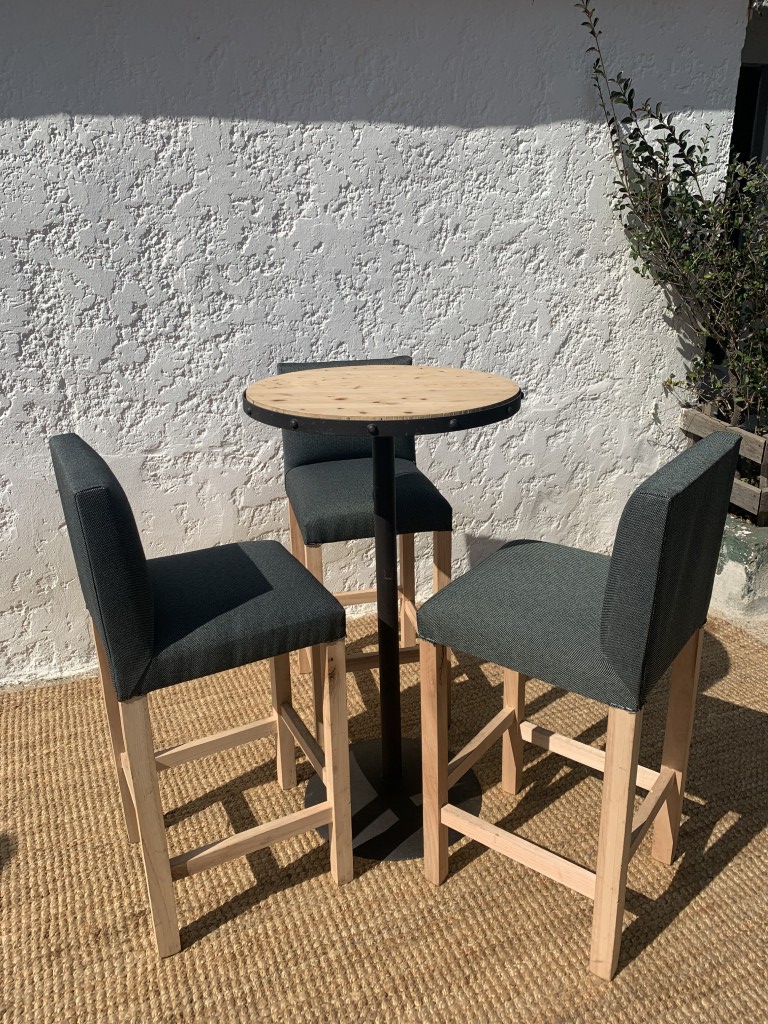 Mesa Alta Redonda Cipres con Butacas Tapizadas