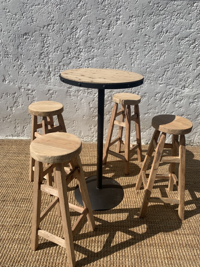 Mesa Alta Redonda Cipres con Taburetes de Madera sin Respaldo